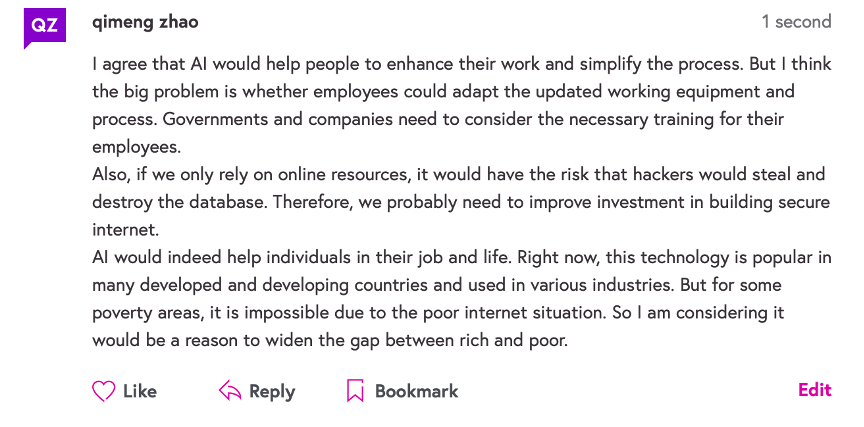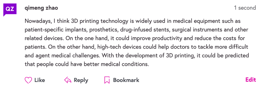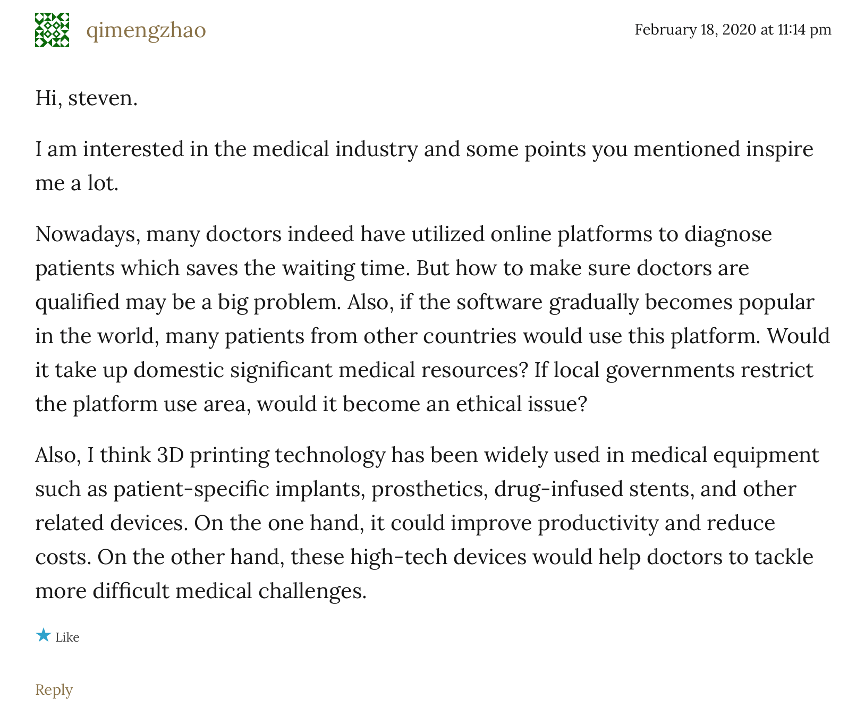 In MOOC, I put comments on AI and 3D printing topics and gain many useful thoughts from different perspectives.